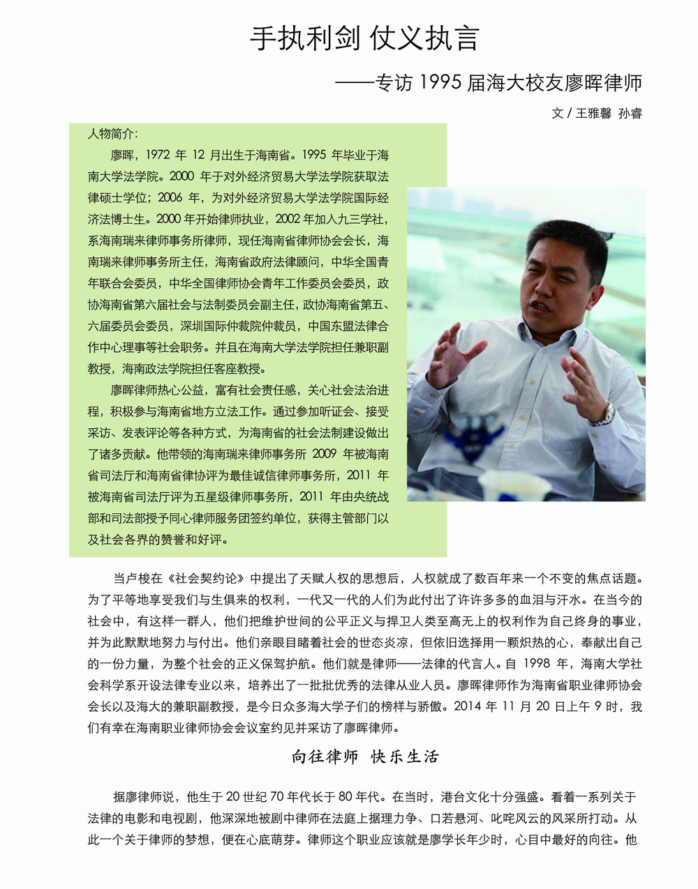 手执利剑 仗义执言 ——专访1995届海大校友廖晖律师