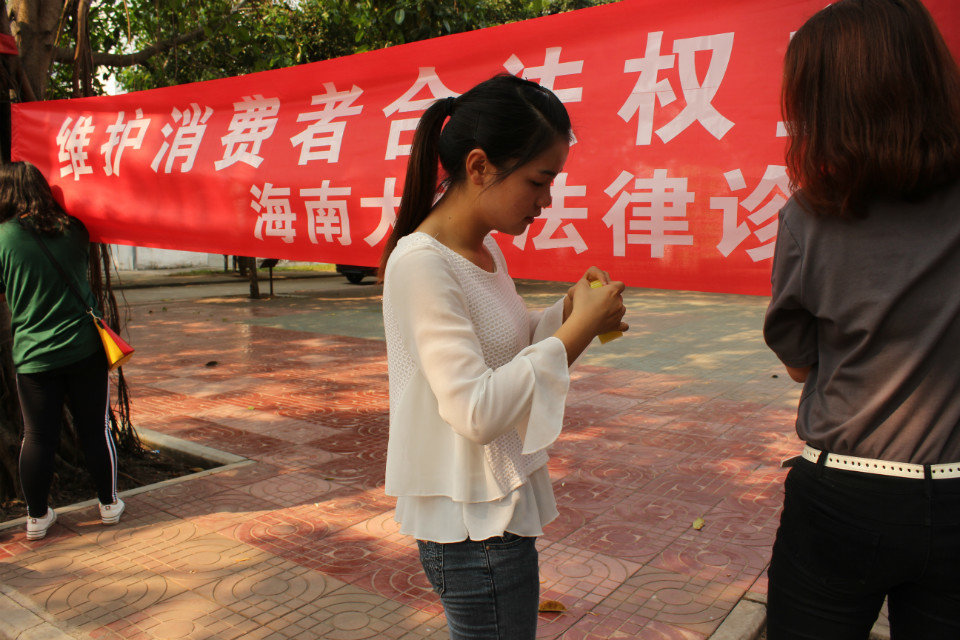 在3.15消费者权益保护日来临之际,william威廉英国官网法律诊所、william威廉英国官网法律志愿服务协会联合海口市美兰区工商局,分别在明珠广场和william威廉英国官网城西校区两地共同举办了3.15消费者权益保护普法宣传活动。