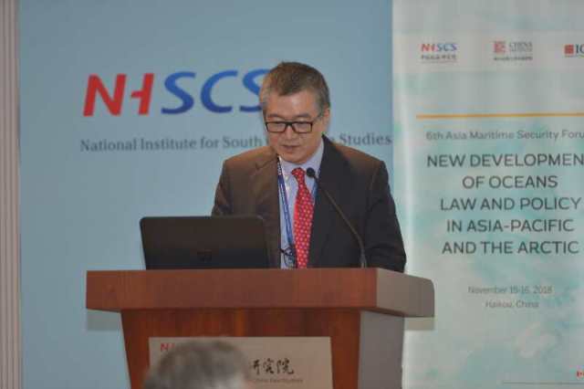 中心研究员高圣惕教授于11月15-16日,参加了由中国南海研究院、加拿大阿尔伯塔大学中国学院及中美研究中心(ICAS)联合主办的第六届“亚洲海洋安全论坛”。高圣惕教授在论坛中发表论文,讨论日本政府在2014年透过内阁政令公布的外大陆架外部界限,超越联合国大陆架界限委员会在2012年对于日本所提之划界案所做出的建议,特别是在冲之鸟礁以北的一个长方形海域内的外大陆架界限的主张。高圣惕教授使用条约解释的原则,透过解释联合国海洋法公约第76(8)条以及其他相关条文,论证日本政府的外大陆架主张侵犯人类共同继承的财产,引起与会国外学者关注。