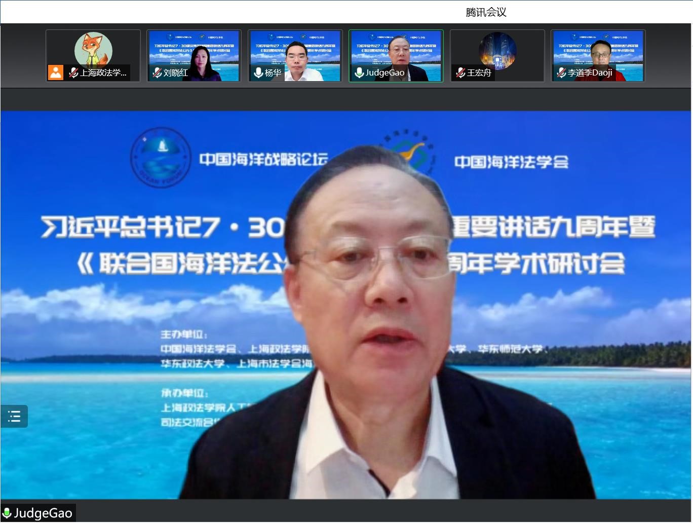 2022年7月30日,“习近平总书记7·30建设海洋强国重要讲话九周年暨《联合国海洋法公约》签署四十周年学术研会”于线上顺利举办。本次研讨会由中国海洋法学会、上海政法学院、上海海洋大学、上海交通大学、华东师范大学、华东政法大学和上海市法学会海洋法治研究会联合主办,上海政法学院人工智能法学院、上海政法学院国际法学院、中国-上海合作组织国际司法交流合作培训基地和上海海洋大学海洋文化与法律学院承办。来自国内政界、学界、企业界的150余名人士相聚云端、分享观点,为我国加快建设海洋强国和完善海洋法治积极建言献策。