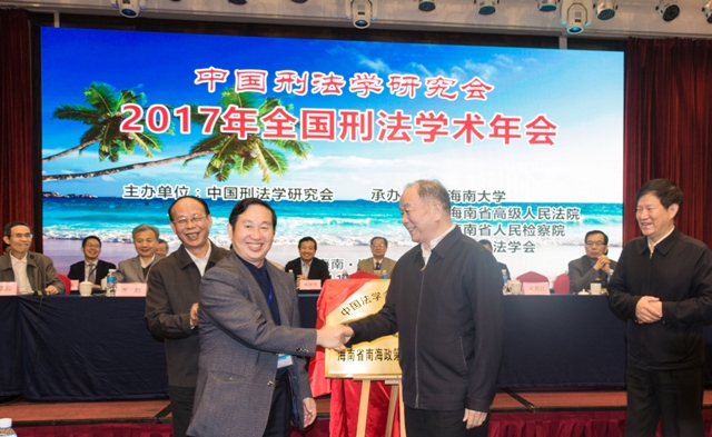 2017年11月26日上午,在中国刑法学术年会开幕式之后,举行了中国法学会法治研究基地“海南省南海政策与法律研究中心”揭牌仪式。