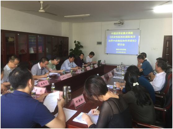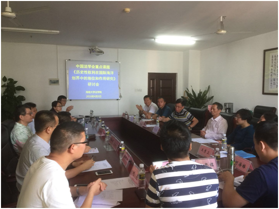 2018年4月3日下午,中国法学会部级重点课题《历史性权利在国际海洋划界中的地位和作用研究》研讨会在中心717会议室举行。海南省南海政策与法律研究中心副主任邹立刚教授,海南省委党校教授李洁宇、副教授李人达,海南省海警总队杨纯正处长出席了研讨会。法学院副院长邓和军副教授主持研讨会。